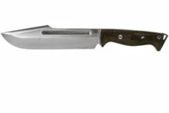 El Bark River Bravo Tope Recon es un cuchillo fijo grande y robusto, diseñado en colaboración con Dan Tope. El mango fue diseñado por Mike Stewart, fundador de Bark River Knives, la hoja fue carta blanca para el fabricante de cuchillos Dan Tope. El resultado es un robusto cuchillo para exteriores con una hoja de punta de arpón. Es tan grande y ergonómico que se puede utilizar para tareas de picado ligeras. Al mismo tiempo, es tan ágil y práctico que también se puede utilizar para las tareas más finas.
