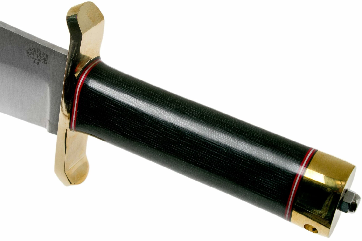 Bark River V-44 Bowie A2 Black Canvas Micarta, Brass Double Quillion, Cuchillo Bowie
