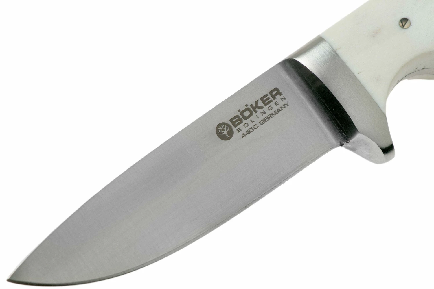 El Böker Integral II Stag 123541 es un cuchillo de caza fijo grande y sólido. La construcción de la hoja y el mango del Integral es única. El cuchillo está construido en un marco integral. Esto significa que la hoja, la espiga del mango y los cabezales están forjados en la misma pieza de acero 440C. Por lo tanto, el cuchillo es increíblemente fuerte. Al sostenerlo se nota inmediatamente que es un buen cuchillo.