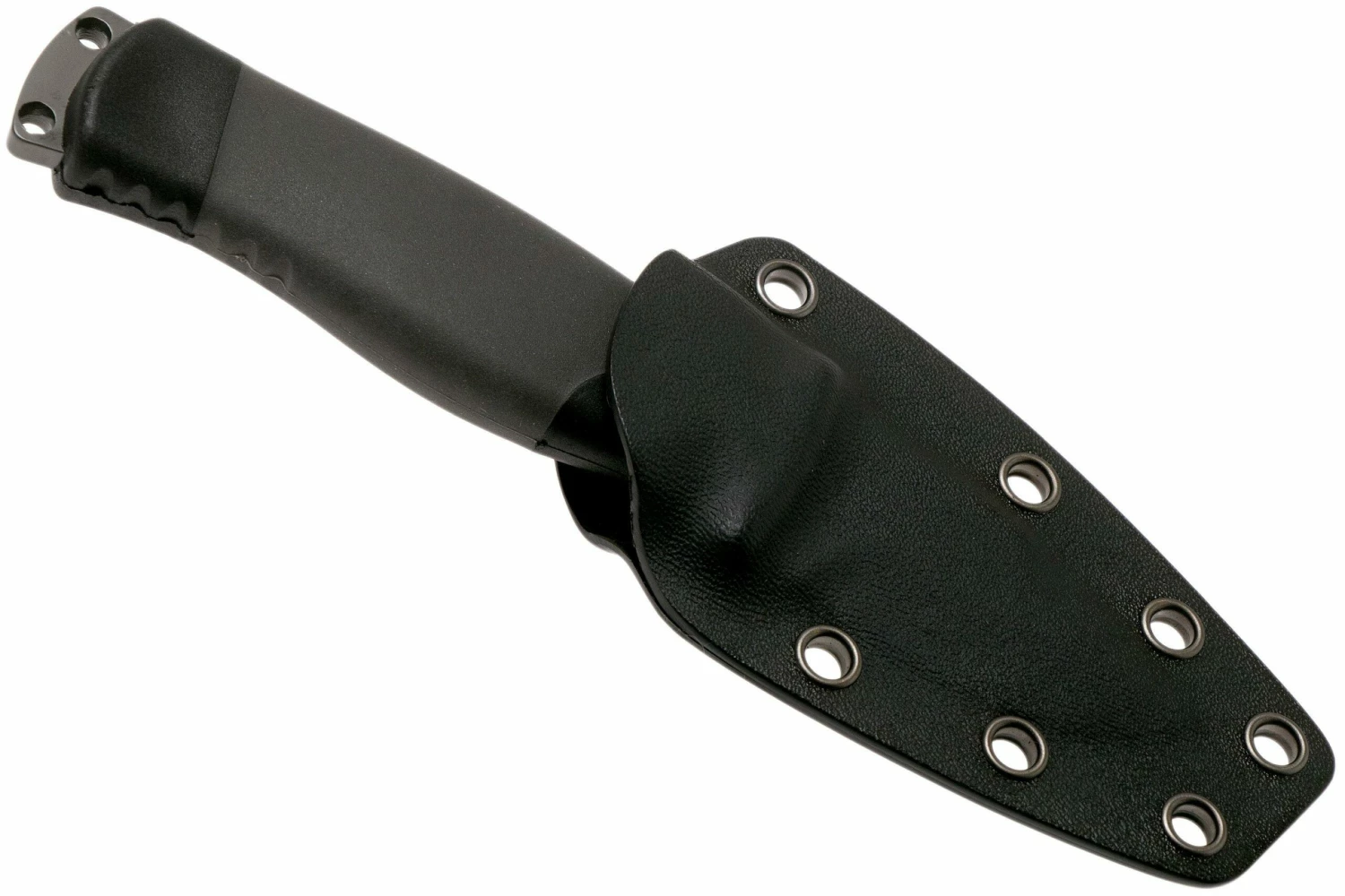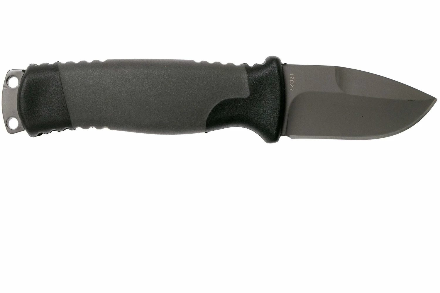 El Böker Plus Outdoorsman Mini 02BO024 es un cuchillo fijo asequible para uso en exteriores. Esta versión, sin embargo, tiene una hoja corta. Perfecto para tareas detalladas. El mango de goma se siente muy bien en la mano y ofrece suficiente agarre. Debajo de una capa de goma se encuentra un núcleo de plástico sólido para una sensación de solidez. La hoja está hecha de acero Sandvik 12C27. Un tipo de acero inoxidable que conserva bien su afilado y además es fácil de afilar. En el extremo del mango sobresale una parte de la espiga de acero. Puedes utilizar esta parte como un martillo improvisado.