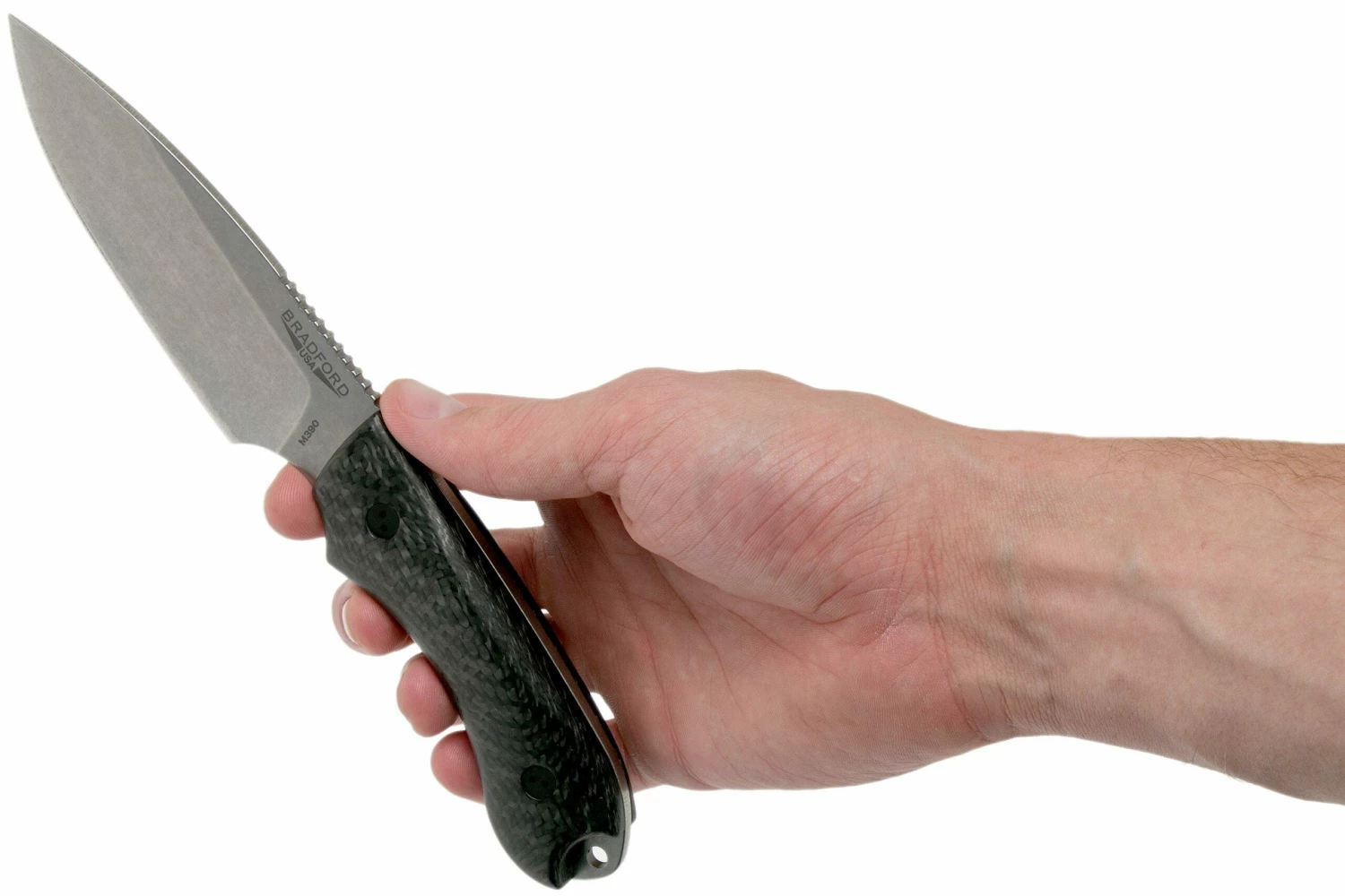 El Bradford Guardian 4 es un buen cuchillo fijo para tareas de exterior. Desde la caza y el senderismo hasta la caza y la supervivencia. Tiene una hoja de 11,8 cm y debido a la gran ranura para los dedos, justo detrás del filo, tienes mucho control sobre la hoja.