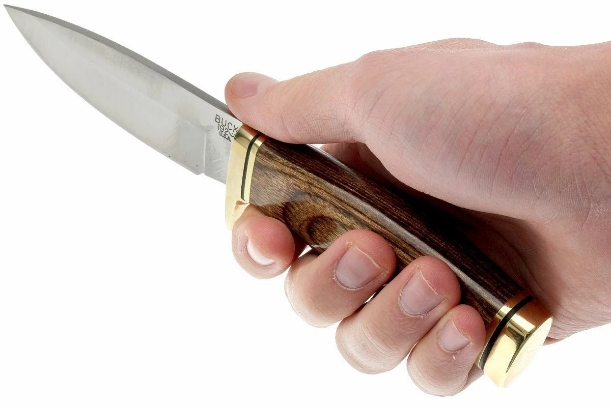 El Buck 192 Vanguard es un elegante y clásico cuchillo de caza. Está equipado con una robusta hoja drop-point y viene con una bonita funda de cuero. El mango es de madera de dymond, un tipo de madera de nogal de gran valor.