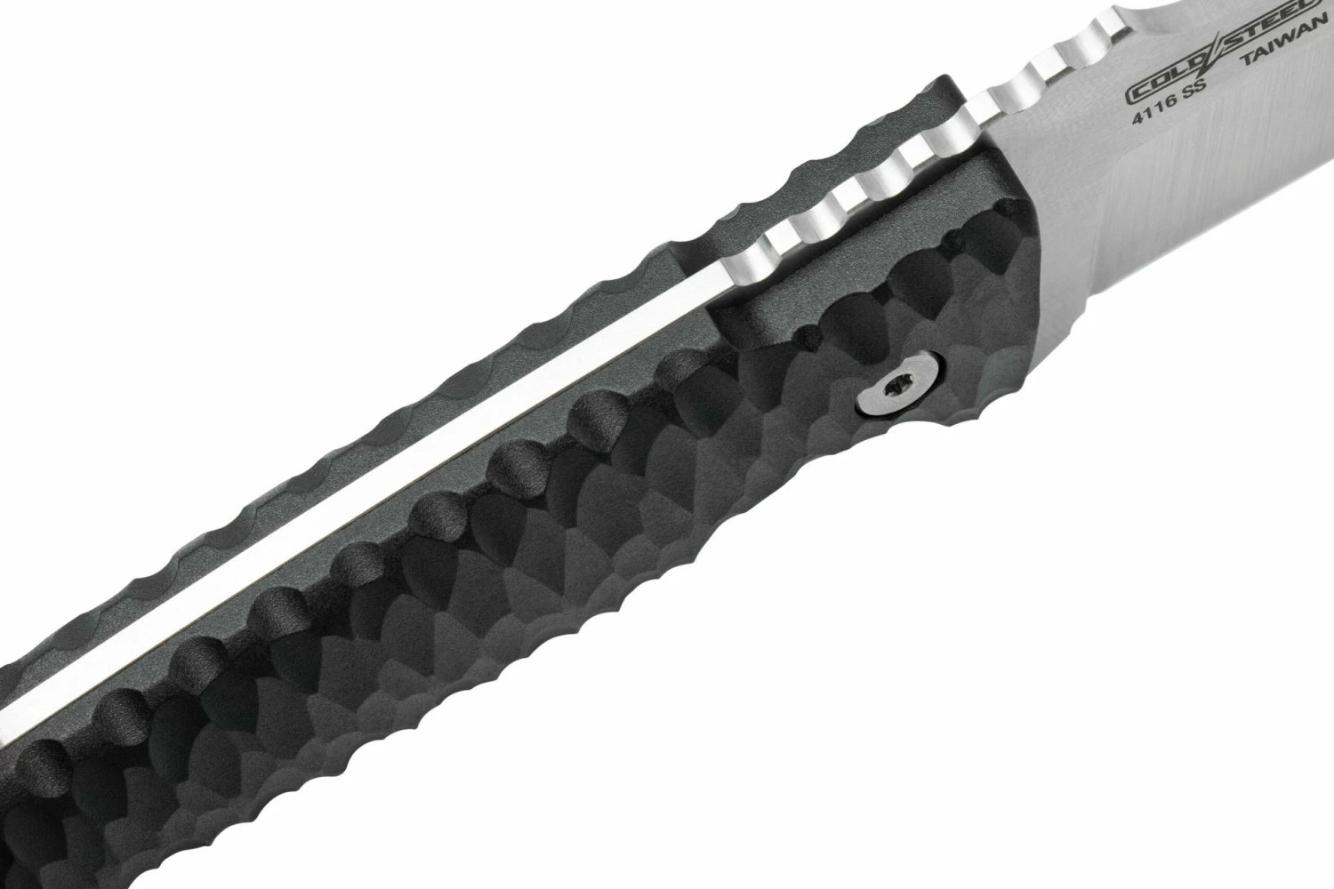 El Cold Steel Razor Tek es un cuchillo de gran tamaño, perfecto para las tareas más exigentes en el campamento. El mango ergonómico se siente muy bien en la mano y el protector de dedos asegura que no te resbales y termines en la hoja. La hoja de colmillo completo está hecha de acero inoxidable 4116. Un tipo de acero sencillo y sin complicaciones que es fácil de afilar. El cuchillo Razor Tek viene con una funda Secure-Ex con trabilla para el cinturón.