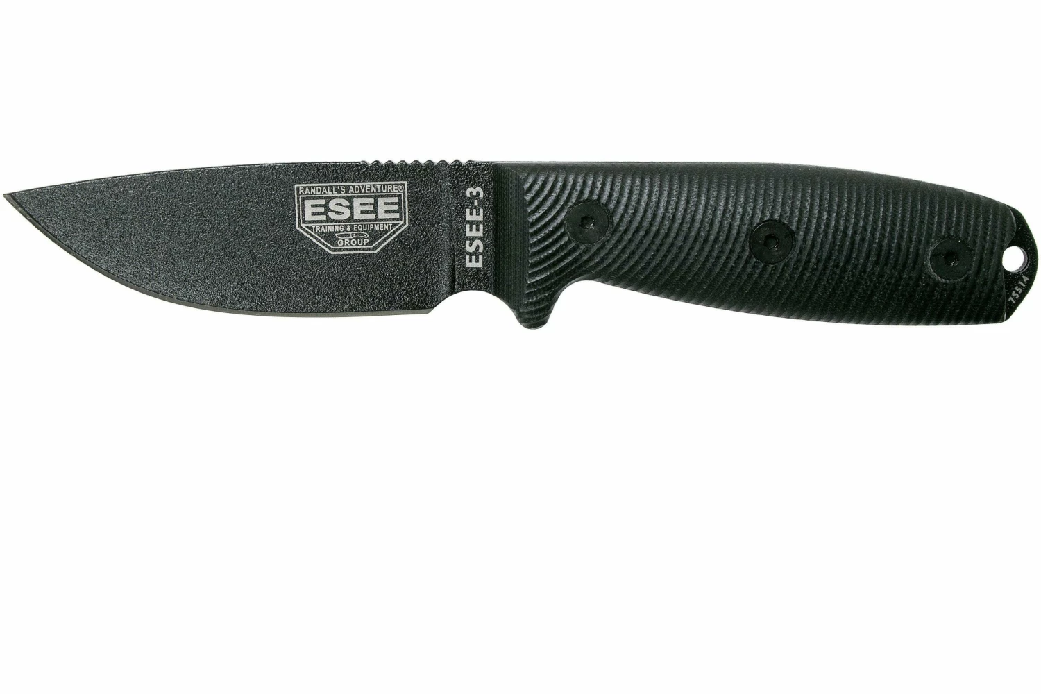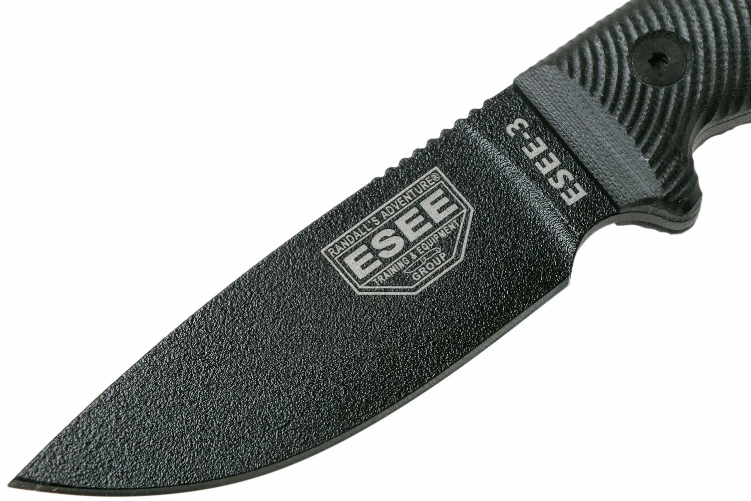 ESEE Model 3 Black Blade 3D Black G10 Cuchillo De Supervivencia 3PMB-001 Funda Negra + Clip Para Cinturón