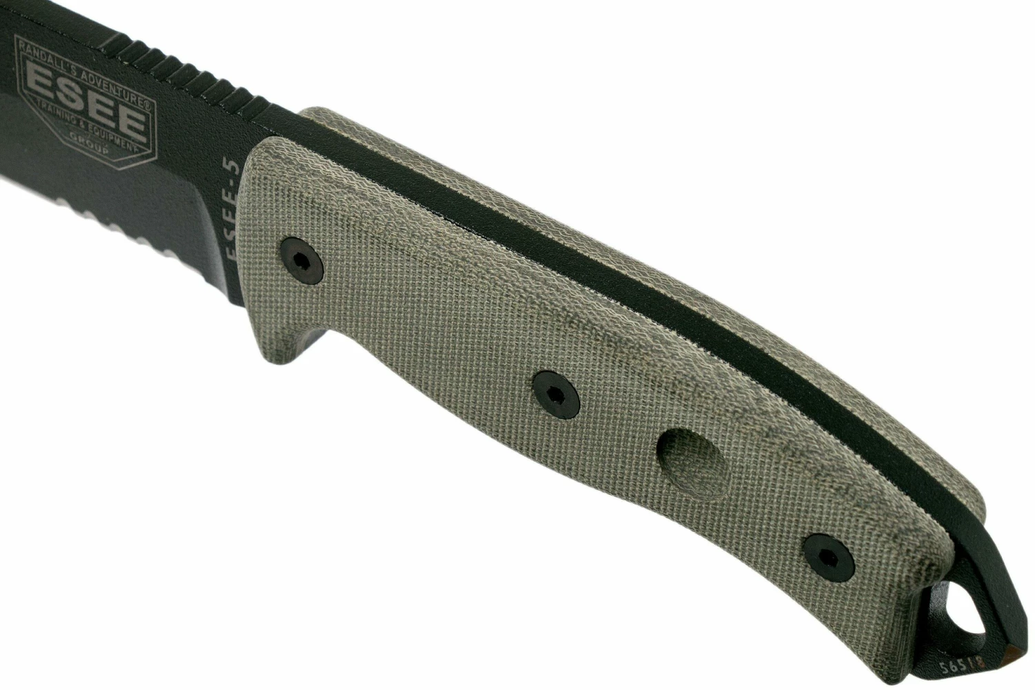 ESEE Model 5 Serrated Black Blade 5S Cuchillo De Supervivencia Con Funda Kydex + Clip De Cinturón