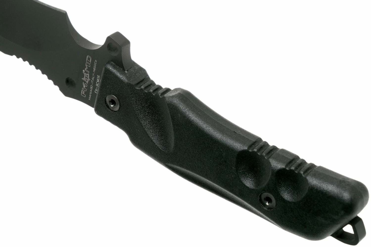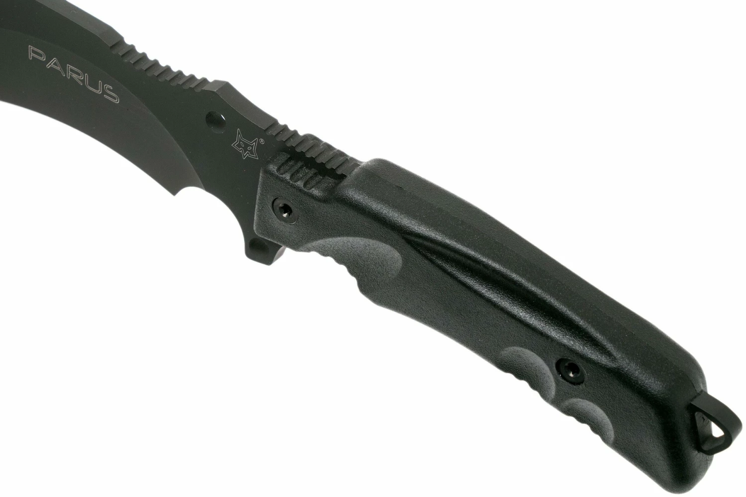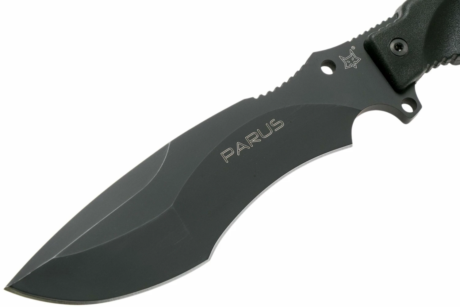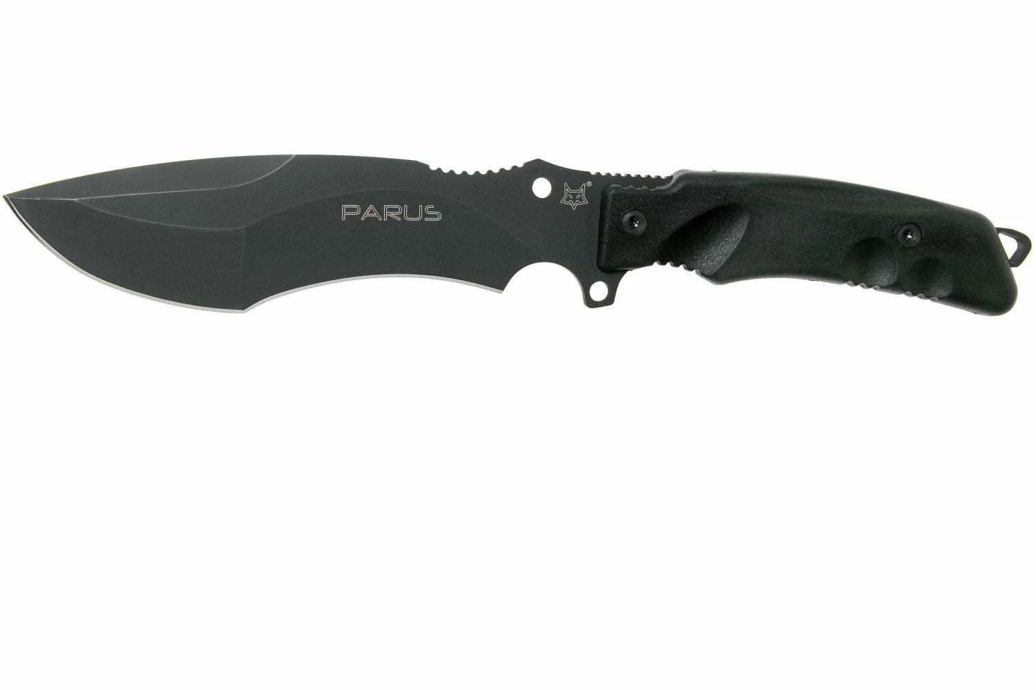 El Fox Knives Parus FX-9CM06 es un cuchillo de supervivencia de gran tamaño, con un completo kit de supervivencia. Con una hoja de 17,5 cm tiene suficiente alcance para picar y cortar finamente. Una parte de la hoja está curvada en la parte delantera del filo. También se le llama recurvo. Por ello, funciona de forma muy eficiente. En la parte delantera de la hoja hay una parte un poco más «baja» para que el centro de gravedad se sitúe también más adelante, lo que te permite tener más potencia para trocear.