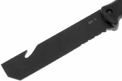 El KA-BAR Bk22 Companion es uno de los cuchillos más pesados de nuestra gama. Este cuchillo puede arreglárselas solo. La hoja tiene un grosor de 6,6 mm y está hecha de acero carbono 1095. Este tipo de acero no es resistente a la oxidación. Por suerte, la hoja está mejorada con un revestimiento negro para asegurarse un mantenimiento mucho más fácil. Gracias a su grosor y a las cualidades permisivas del acero 1095, este cuchillo puede con casi todo, es casi imposible romperlo. Además, el cuchillo es fácil de afilar, por lo que es increíblemente popular.