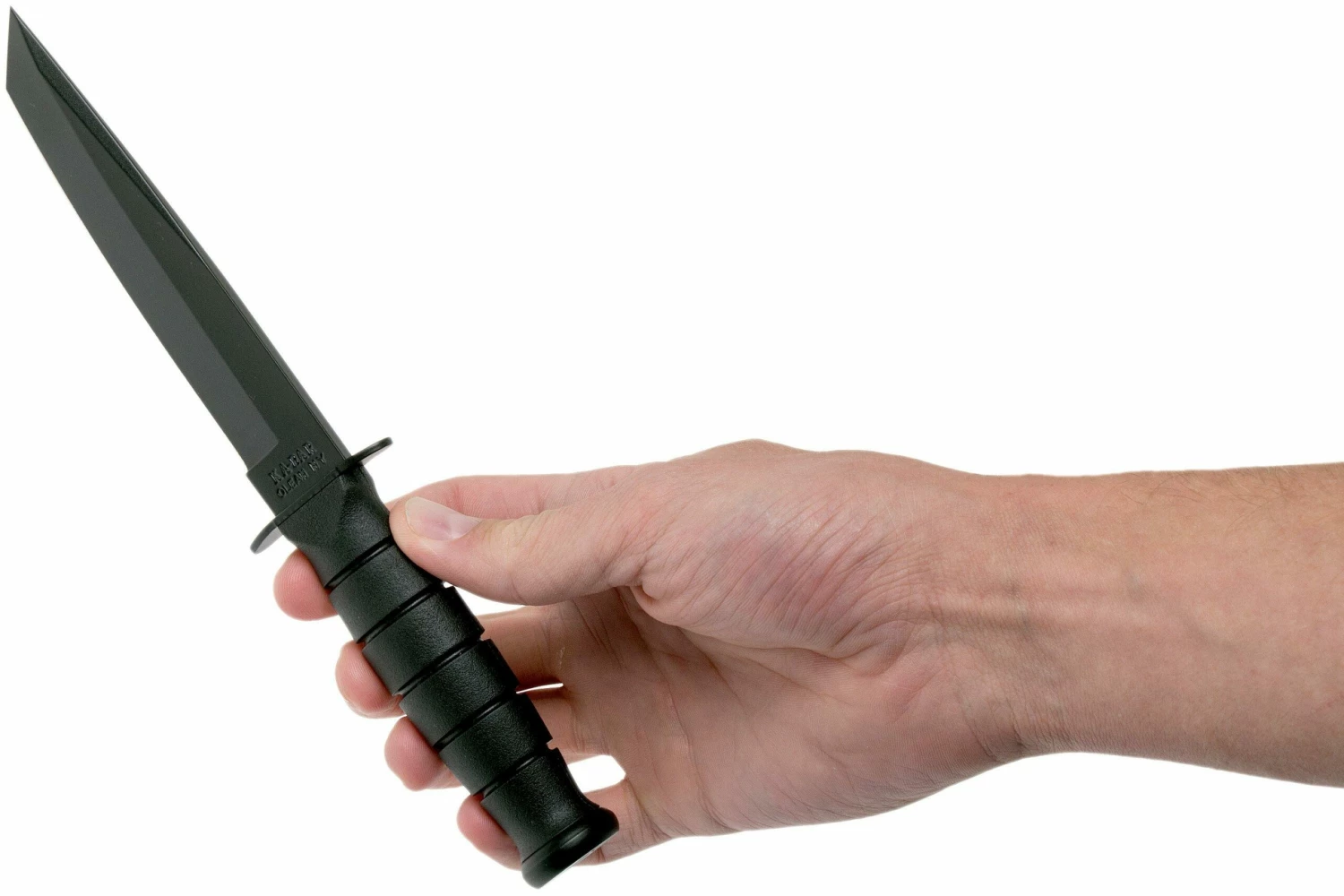 El KA-BAR Short Tanto es el hermano pequeño de influencia asiática del famoso KA-BAR USMC. El cuchillo está mejorado con las mismas características, pero con una hoja de tanto. El aspecto punzante de la forma de tanto distingue a este cuchillo de la competencia. El cuchillo es grande y muy fuerte. El mango está reforzado con piezas de protección para asegurar que no acabes en el filo y te cortes durante el uso intensivo. La hoja está hecha de acero al carbono 1095. Este tipo de acero no es inoxidable. Por suerte, la hoja está mejorada con un revestimiento negro para garantizar un mantenimiento mucho más fácil. Puedes llevar esta KA-BAR fácilmente contigo en la funda incluida.