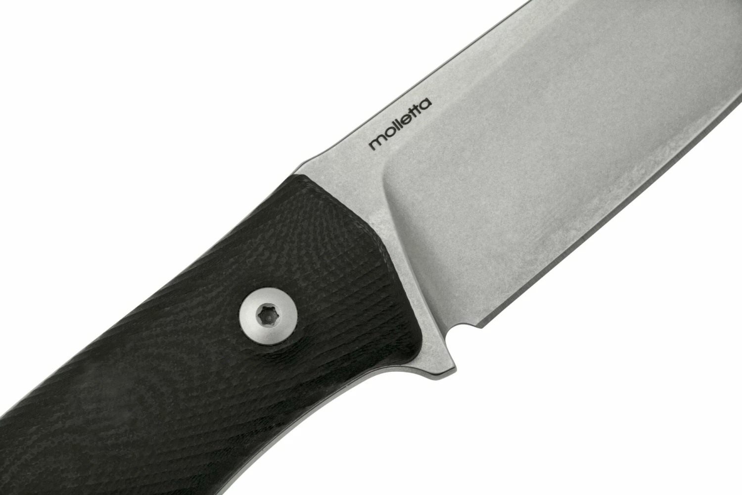 El LionSteel M4 MagnaCut es un cuchillo fijo todoterreno diseñado por Michele ‘Moletta’ Pensato. Está diseñado como un cuchillo para entusiastas del bushcraft y otros aficionados al aire libre. Lo suficientemente grande como para usarlo cómodamente y lo suficientemente compacto como para llevártelo de excursión. Por un lado, el diseño de este cuchillo es muy moderno. Por otro lado, parece un cuchillo de caza clásico. LionSteel sabe equilibrar estas dos cosas como nadie. En el lomo de la hoja, alrededor de la transición del mango, se encuentra una pequeña parte que sobresale. Es tan pequeña que apenas se nota, pero lo suficientemente grande como para ofrecer al pulgar más agarre.