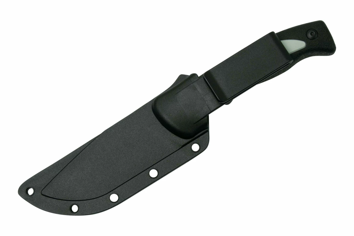 El Cuchillo de caza Old Timer Trail Boss es un cuchillo de caza asequible con mango de polímero. Las ranuras para los dedos en el mango hacen que el cuchillo sea muy cómodo de sostener. La gran hoja de punta caída también tiene una ranura para los dedos. Realmente agradable para las tareas que requieren precisión. Con la funda de Kydex puedes llevar fácilmente este cuchillo en tu cinturón.