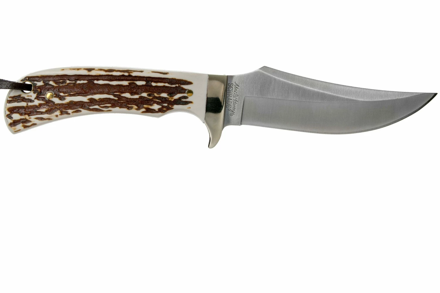 El Uncle Henry Skinner Next Gen 1100034 es un cuchillo de caza asequible. Tiene una hoja puntiaguda y una grande guarda de latón para el cuchillo, que mantiene los dedos alejados del filo. El mango es relativamente grueso, por lo que se puede agarrar bien, incluso con manos grandes.