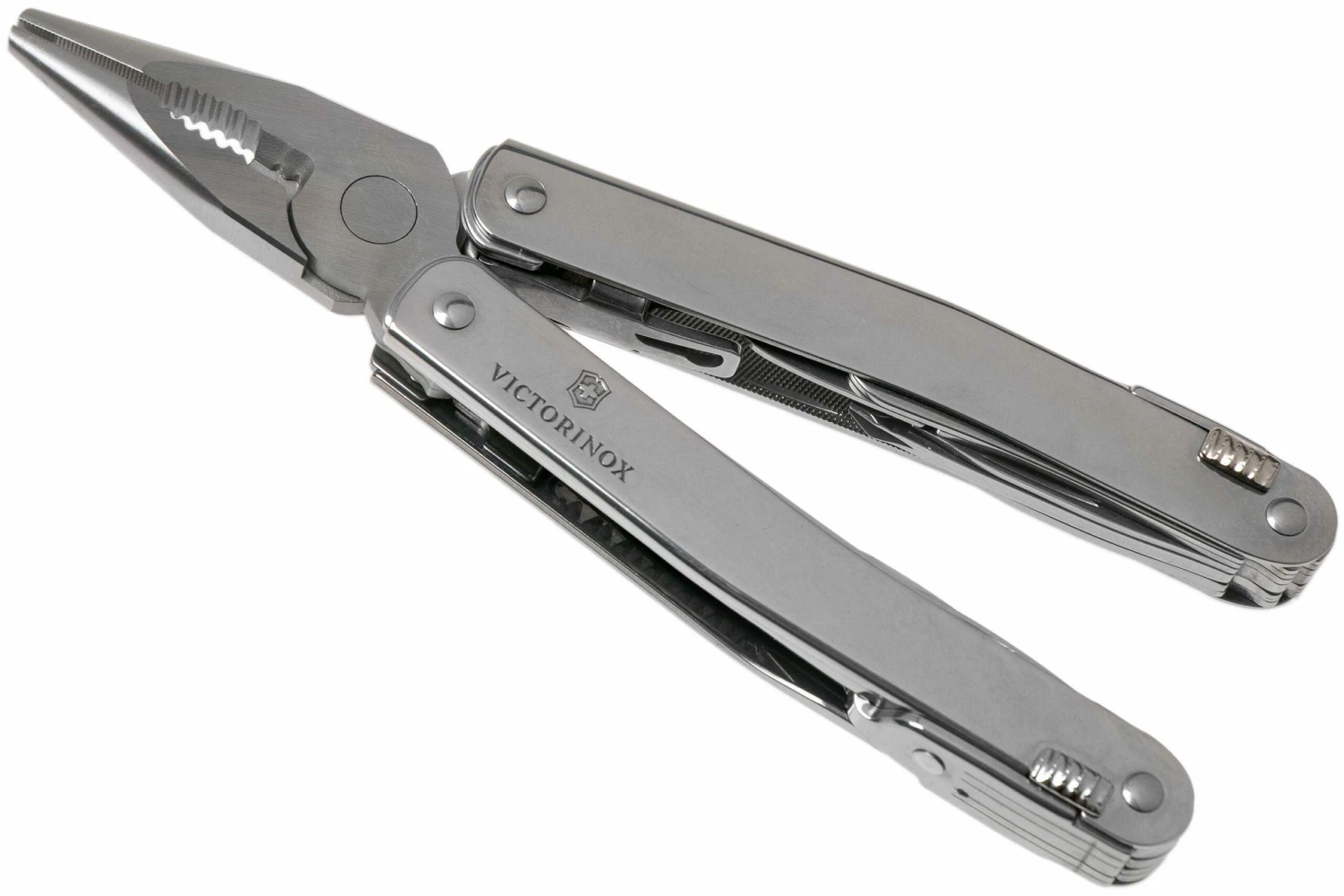 La Victorinox SwissTool Spirit X Plus es la hermana bebé de la SwissTool. La Spirit tiene 24 funciones. Completamente fabricada en acero inoxidable y pulida. Esta Spirit viene con una funda de cuero con trabilla. Con esta sólida funda podrás colgar fácilmente la SwissTool en tu cinturón. El cierre es de velcro y, por tanto, fácil de abrir. En esta funda puedes guardar fácilmente tu multiherramienta y llevarla contigo.